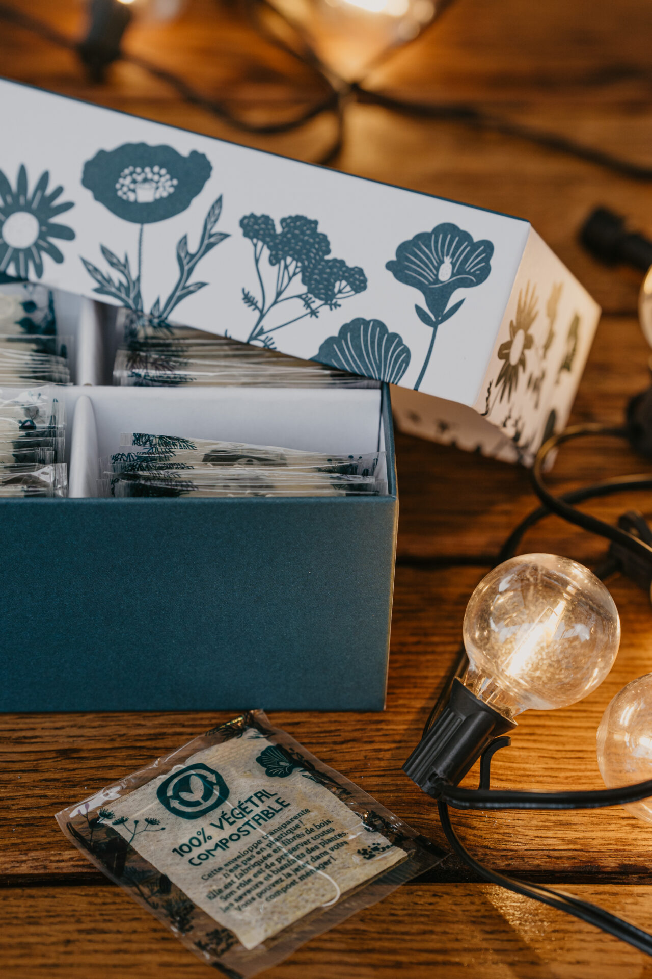 Dans votre tasse préférée, verser de l’eau frémissante sur le sachet. Patience, les plantes libèrent leurs parfums et bienfaits au bout de 5 à 10 min. Les recettes Vanille et Choco sont délicieuses infusées dans du lait (végétal). Essayez les recettes Fruits des bois et Pêche en version froide !
